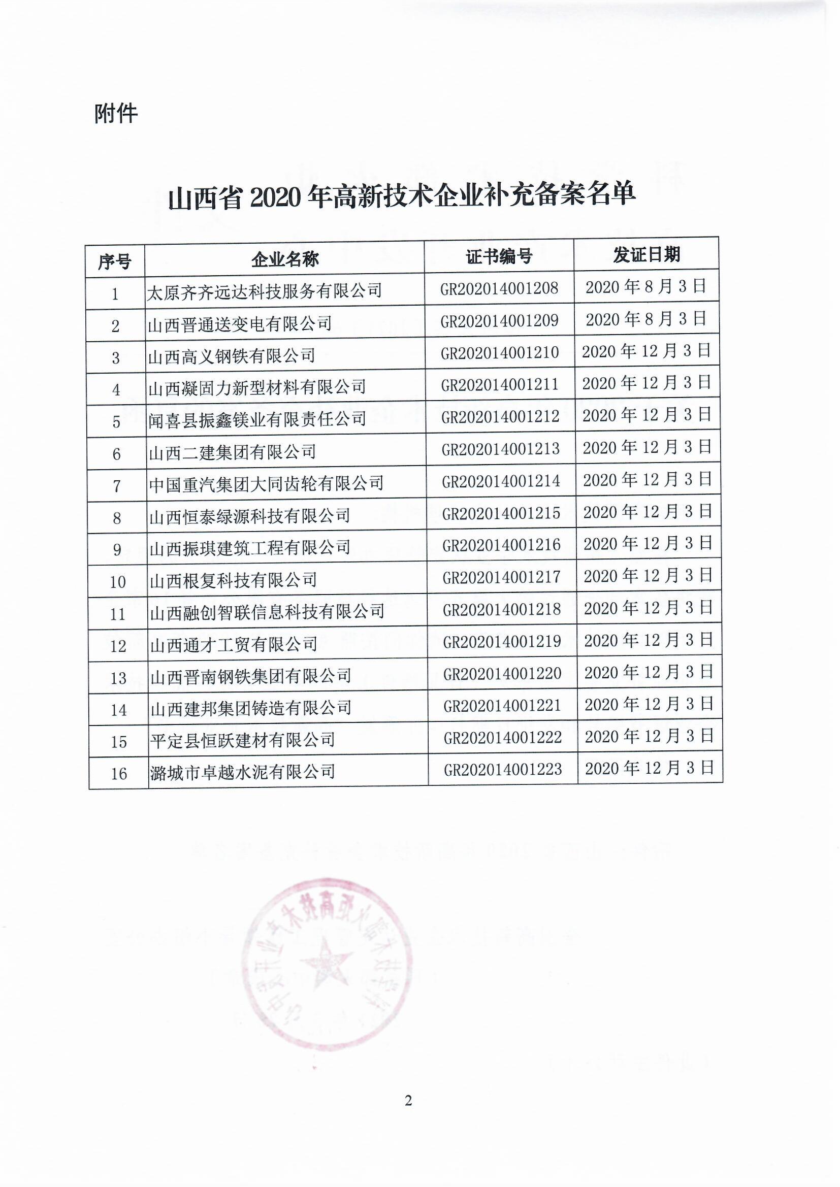 2021年3月26日,全國高新技術(shù)企業(yè)認定管理工作領(lǐng)導(dǎo)小組辦公室將備案抽查通過的太原齊齊遠達科技服務(wù)有限公司等16家企業(yè)予以高新技術(shù)企業(yè)備案,具體如下: